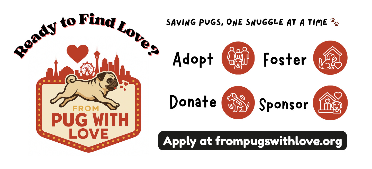 If you or someone you know is looking to adopt, foster, and support a brand-new local rescue, check out From Pug With Love! Together, we can help these sweet pups find their forever families β right here in Southern Nevada. πΆβ€οΈπΎ Follow @frompugwithlove on Instagram, Tik Tok and Facebook!